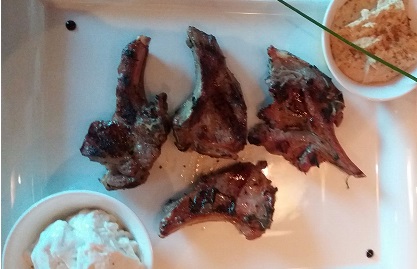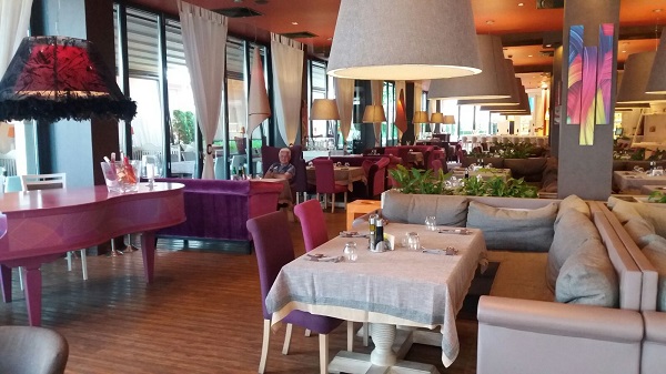 The theme is purple and has tables that you can dine at with large, plush, comfy chairs, or sofas! There is plenty of variety and also a choice of where to sit, whether it be inside, or outside in a covered area or in the open. The portion sizes mere towards a la carte, however saying that the desserts are on the large side! I would recommend the lamb chops that melt in your mouth with a fantastic flavour, along with a variety of fresh salad. Also the ice cream sundae for dessert is 'a must'. At prices averaging at £24 for a two course meal with drinks and freshly stone baked bread.